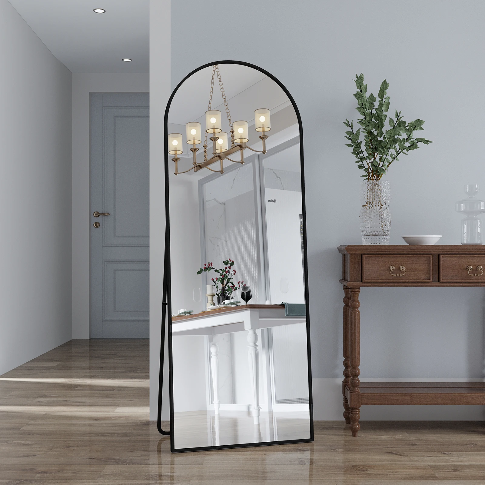 2. Unique curved design: the personalized design of this full body mirror is impressive. The top of the mirror is designed with a curved edge, and the high-quality aluminum frame makes the mirror look both discrete and upscale.